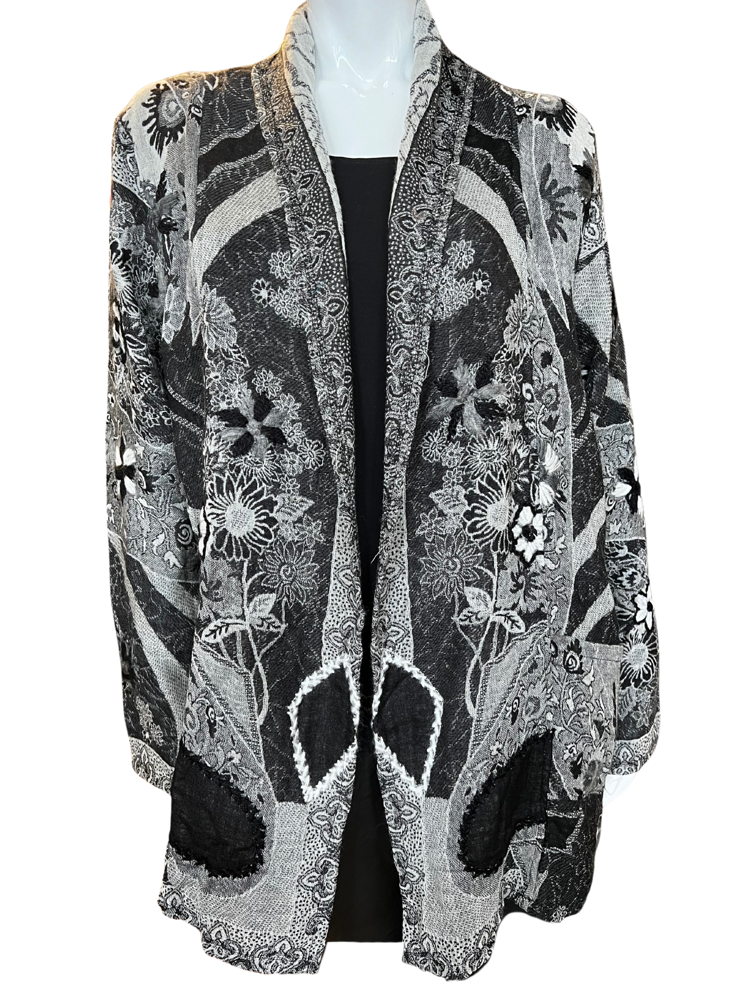 Expertly hand-embroidered with 100% wool in India, the Baba Printed Cardigan is the perfect blend of quality and style. Its one-size-fits-all design ensures a comfortable and flattering fit for all body types. Elevate any outfit with this unique and ethically made cardigan.