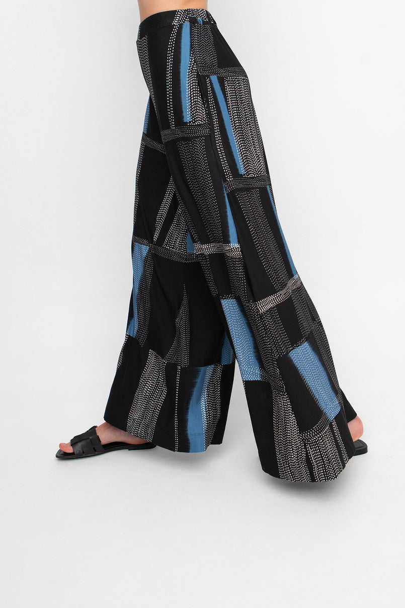 Jersey loose wide leg pants with an elastic band at the back, side pockets in an abstract dot and splash pattern